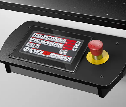 操作パネルと本体を囲むように配置された緊急停止機構により、オペレーターの安全を確保します。さらに、プリンタの状態を示し、アラート機能をもつ表示灯が標準装備されています。