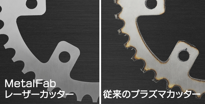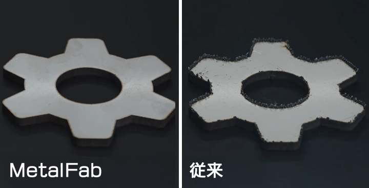 従来の金属切断と比べ、はるかに切断幅が減少。バリが少ないため、後処理の必要はほとんどなし。